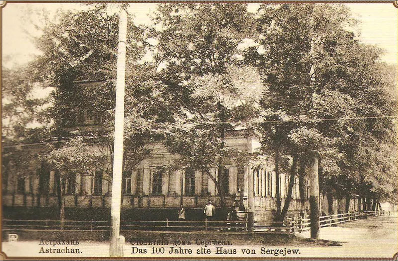 - г. Астрахань Паробичебугорная улица (Табачный ряд, Полицейская улица), дом Сергеева Никиты Даниловича (действительный статский советник, губернский предводитель дворянства. Там располагалось музыкальное училище на 1906 г (начало 20 в, фото из инт-та)